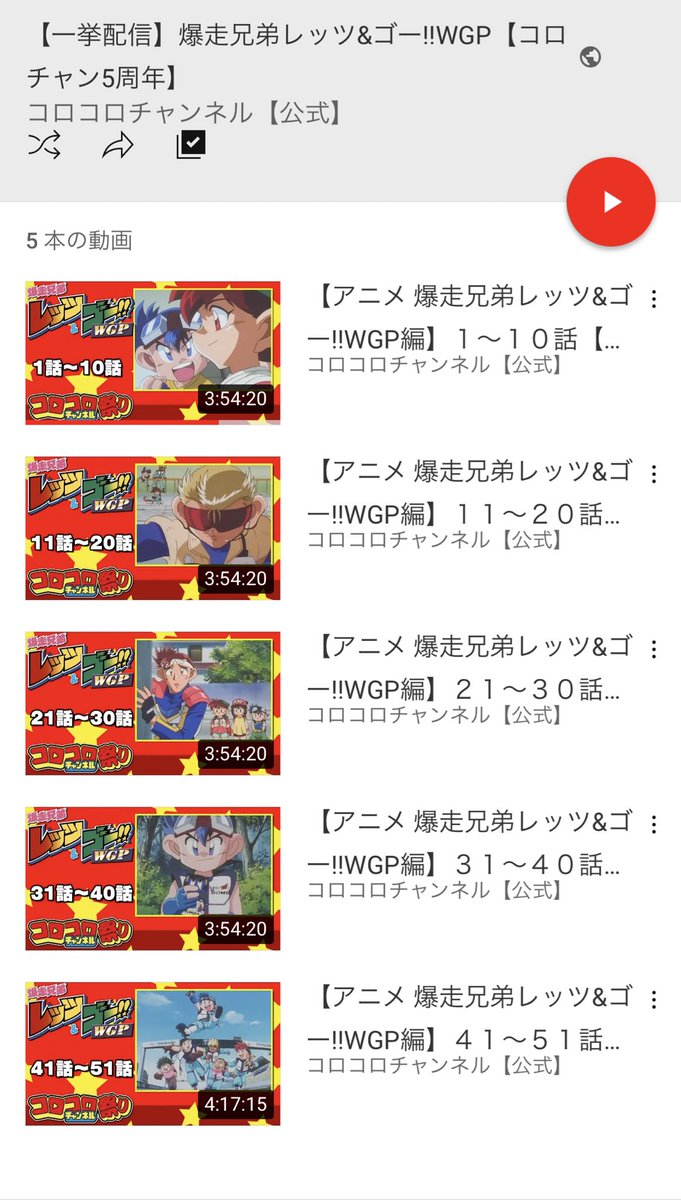 ひろかず コロコロチャンネルで爆走兄弟レッツ ゴー Wgp全話が限定公開されてる